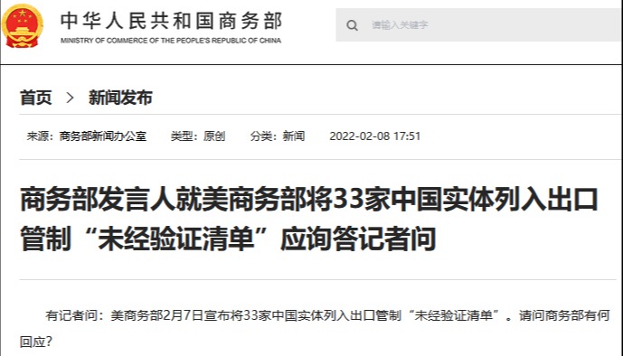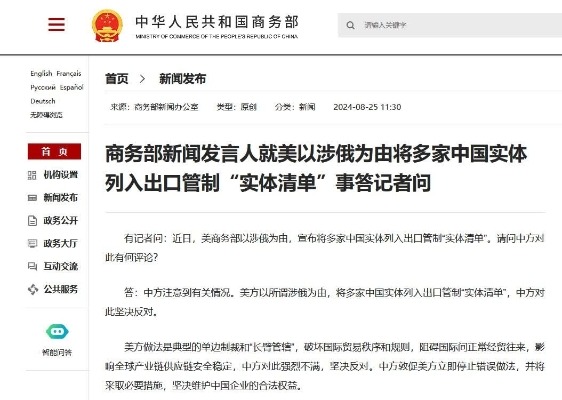香港新聞網4月15日電 據商務部網站15日消息,商務部新聞發言人就美將我多家實體列入“實體清單”和“特別指定國民清單”事答記者問。