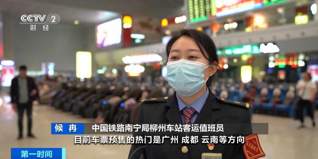 中國鐵路南寧局柳州車站客運值班員 候冉:目前車票預售的熱門是廣州、成都、雲南等方向。預計整個五一假期,柳州站將增加南寧、賀州等方向6趟車。
