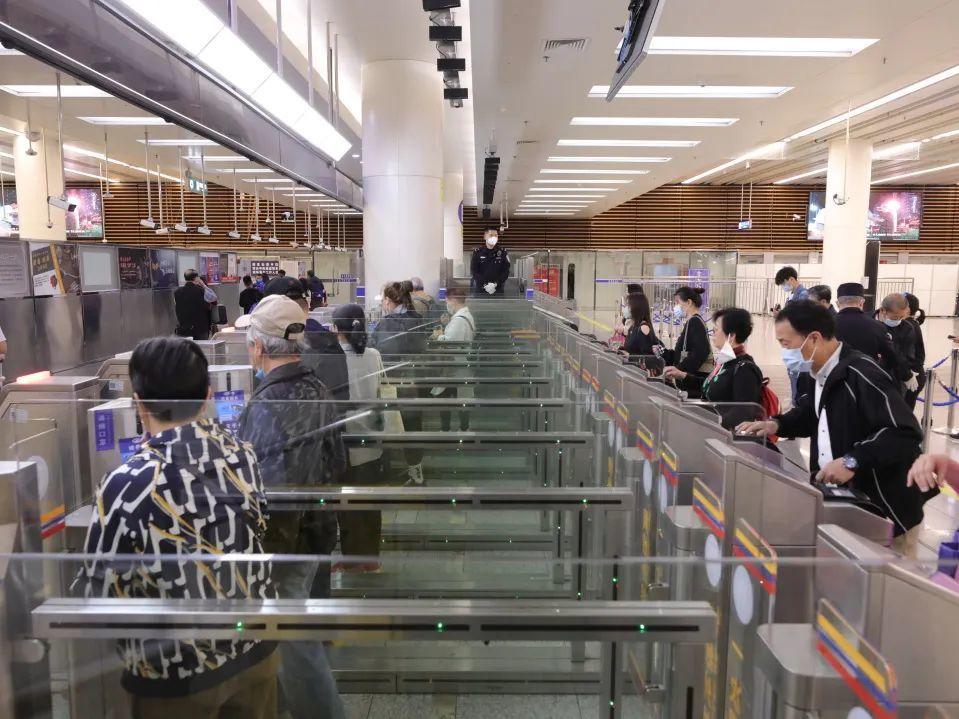 圖為深圳邊檢總站皇崗邊檢站移民管理警察在福田口岸引導旅客便捷通關。(馬東桂 攝)