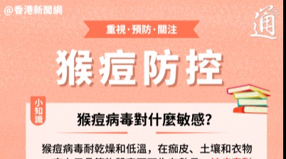 香港新聞網4月21日電 香港衞生署衞生防護中心昨日(20日)表示,正調查一宗與懷疑輸入個案有關的猴痘確診個案,並提醒市民提高警覺。 該確診個案涉及一名過往健康良好的34歲男病人,他沒有接種猴痘疫苗,12日出現局部皮疹。由於病徵未有減退, 19日向私家醫生求診,並於同日獲安排入住瑪嘉烈醫院作進一步治療。 衞生防護中心公共衞生化驗服務處20日確認病人的樣本測試結果對猴痘病毒呈陽性。 什麼是猴痘?猴痘有哪些病徵?如何預防?香港新聞網梳理猴痘病毒7大Q&A,帶你了解!