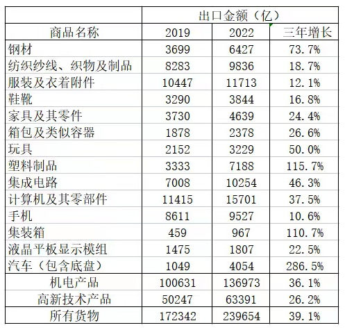 中國各類產品外貿出口增長表 從數據趨勢來看,這幾年的中國出口是一個“全球商家在中國找賺錢機會”的故事。 中國外貿實力的全球效應 對疫情後的中國經濟,有看好的也有唱衰的,但是從一季度的數據看,中國外貿又一次實現了良好開局。海關總署數據顯示,一季度中國貨物貿易進出口總值9.89萬億元,同比增長4.8%,其中出口同比增長8.4%。這一表現比很多機構預計的結果更加樂觀。 多年來,中國外貿經歷了無數次國際市場的驚濤駭浪,但一次次又展現韌性與實力。去年中國貨物進出口突破40萬億元大關,不僅克服了較高的基數效應,而且直面國際國內市場上始料不及之因素衝擊,比如烏克蘭危機、疫情反複等帶來的巨大挑戰,實現較高速增長。 從整體國民經濟發展來看,2022年貨物與服務淨出口對GDP的增長貢獻率達到17.1%,拉動GDP增長0.5個百分點。在國際需求減弱的背景下,中國外貿保持昂揚向上,對保障國民經濟的整體穩定發揮了巨大作用。 中國進出口有著全球效應,已經是全球經濟極為重要的成分,甚至成為許多國家經濟賴以運行的最重要基礎條件。 美國緣何在經濟上不願與中國脫鈎?以美國2022年的貨物貿易數據為例,美國2022年從中國進口高達6348億美元,遙遙領先其餘國家。接下來是日本的1480億美元,以及德國的1470億美元,都不到中國的四分之一。其它較多的是越南和韓國,也超過1000億美元。 隨著產業不斷提質昇級,今天的中國製造品質早已是今非昔比,具備高性價比優勢的中國產品在全球廣受歡迎。在市場瞬息萬變的今天,不僅新技術的產品在不斷突破,傳統出口產業的優勢仍然鞏固保持,數據顯示,今年一季度勞動密集型產品和機電產品出口分別增長5.7%和7.6%。這是中國貨物貿易第一大國的基礎所在,也是全球商家之所以依賴於中國製造的關鍵。 2019年,有一部紀錄中美關係的紀錄片《善良的天使》熱播,這是一位英國電影導演歷時五年拍攝的,在片中他發出呼籲:你們彼此不是敵人!中美需要更多“善良的天使”搭建溝通與互信的橋樑。 改變偏見,從瞭解開始。在這個經濟陷入危機的時代, 這或許是全球商家的心聲。(完) 【編輯:錢林霞】