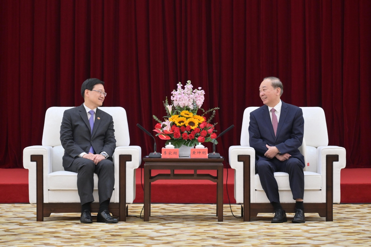 廣東省委書記黃坤明與特首李家超會面(香港政府新聞處圖片) “今次訪問只是一個起點”,李家超告訴記者,“我們要追時間,追結果,追前列。要敢於創新、打破瓶頸,努力將香港建成屹立世界的前列城市。” 事實上,自2月6日香港與內地全面恢複通關以來,特區政府“追”的腳步便沒有停歇。 2月下旬,李家超率團訪問廣州和深圳,這是他上任後首次訪大灣區。 3月中,李家超參加全國兩會閉幕會後,率領多名高層官員訪京,拜訪多個中央部委。 4月中,香港財政司司長陳茂波率多個政策局局長和金融監管機構代表訪問北京,拜會了財金、商務及科技等相關的中央部委和機構,并在北京大學發表演講。