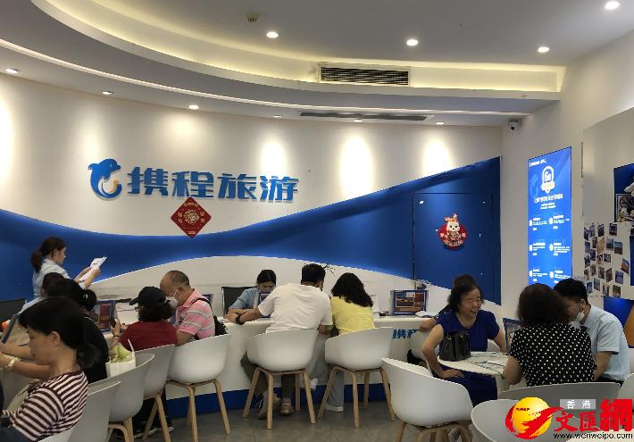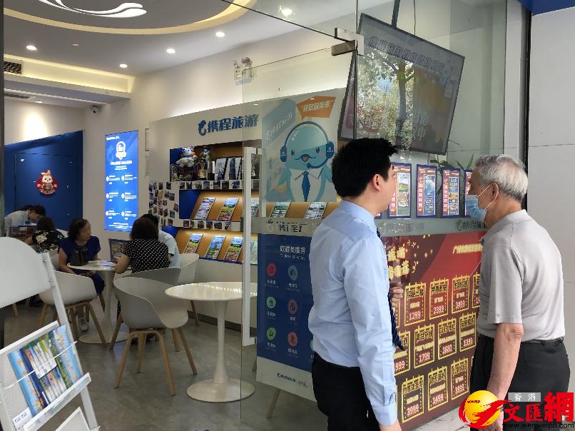 在廣州“旅行社一條街”教育路,部分門店都坐滿了計劃“五一”出遊人群。(香港文匯網記者 方俊明 攝)
