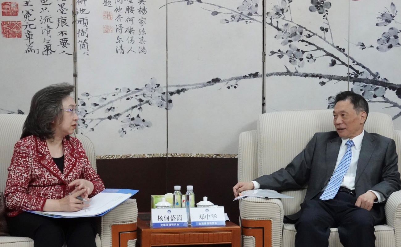 楊何蓓茵(左)與全國港澳研究會會長鄧中華(右)會面。