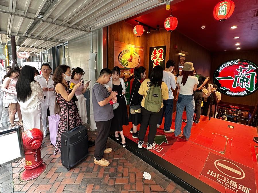 圖為當日中午,尖沙咀一間知名食肆大排長龍,等候時間超過1小時。(香港中通社記者 謝光磊 攝) 有旅客表示會在港玩足5天,更入住每晚3000多元的酒店,除購物外,還會帶小朋友到迪士尼樂園及海洋公園遊玩,豪言在港沒有消費上限,見合意的就買。有旅客在三年疫情後特意再次訪港,形容香港雖經歷疫情,但現在與之前相比並沒有明顯變化。 尖沙咀廣東道一帶,行人路上塞滿行人,前往天星碼頭及海港城的路上只能隨著人潮走動,而人潮中大部分也是打扮得光鮮亮麗的內地旅客。 不少旅客拖著行李箱到商場購物,廣東道有大量旅客到場,在名牌皮革店外排隊輪候入場,預備搶購最新款商品。有名店輪候入場的遊客多達數十人,要在店外“打蛇餅”排隊。區內藥房也擠滿選購商品的顧客,現場人聲鼎沸、非常熱鬧,而天星碼頭亦有不少擺好姿勢拍照留念的旅客。 列車上熟悉的人氣又回來了 香港“點新聞”報道,廣鐵集團廣九客運段透露,今年1月中旬以來,廣九客運段日均值乘過香港高鐵46列,“五一”期間值乘過香港高鐵將達98列,增幅超一倍,迎接“五一”假期客流高峰。 今天(29日)迎來“五一”假期首日,由廣鐵集團廣九客運段廣九車隊列車長晏苗值乘的“廣州東-香港西九龍”G6553次列車,上午10時許搭乘630多名旅客,駛出廣州東站。 工作18年的晏苗是第一次在“五一”假期值乘過香港列車。她每次出乘前都會在乘務箱裡自備一個百寶袋,內有充電線、創可貼、暖寶寶、哺乳巾、糖果等小物品,滿足不同旅客個性化的需求,讓旅客旅行體驗更加美好。 “今年的’五一‘,列車上熟悉的人氣又回來了,看到提著大包小包、來來往往的旅客,我心裡也感到高興。”晏苗說。 據悉,自今年1月15日廣深港高鐵香港段恢復運營以來,廣九客運段日均值乘過香港高鐵46列,上座率99.16%;今年“五一”期間值乘更達到98列,極大方便了內地與香港的交流與經貿往來。 【編輯:紀東】