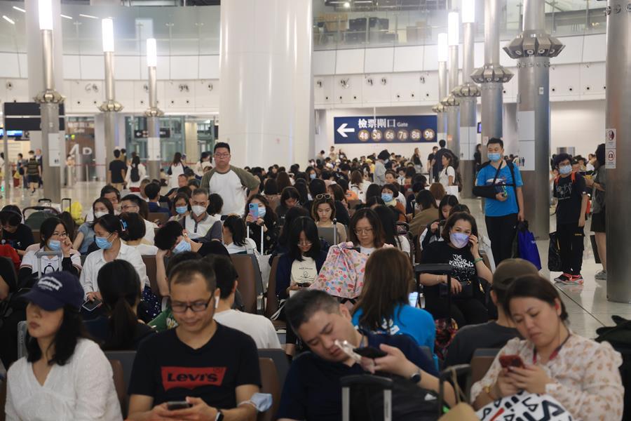 4月29日是內地五一旅遊黃金周的首日,香港高鐵西九龍站客流如潮。圖為大批旅客於候車大堂等車。(香港中通社記者 許其皓攝) 數據顯示,雖假期首日出入境人數較去年同期有大幅上漲,但與疫情前仍存在一定差距。 去年“五一”假期首日(4月30日),香港總出入境數據僅有7862人次,其中九成五以上為香港居民,主要經由香港國際機場、深圳灣口岸以及港珠澳大橋三個口岸出入境。 而在疫情前的2019年“五一”假期期間(5月1日至4日),僅入境人數入境處方面已錄得逾208萬人次,平均每日入境訪客數量約52萬人次。 而據入境處此前預計,今年“五一”勞動節假期期間(即4月29日至5月4日)約有461萬人次(包括香港居民及訪客)經各海、陸、空管制站進出香港。 內地客遊港揮金 香港《文匯報》報道,香港社會復常後首個內地五一勞動節長假期,大批內地旅客陸續來港旅遊消費。不少豪客到尖沙咀的“名店街”廣東道一帶購物,各間名店外擠滿排隊入場的人龍,不少人更拖著行李箱走動,到各店購物及拍照“打卡”。
