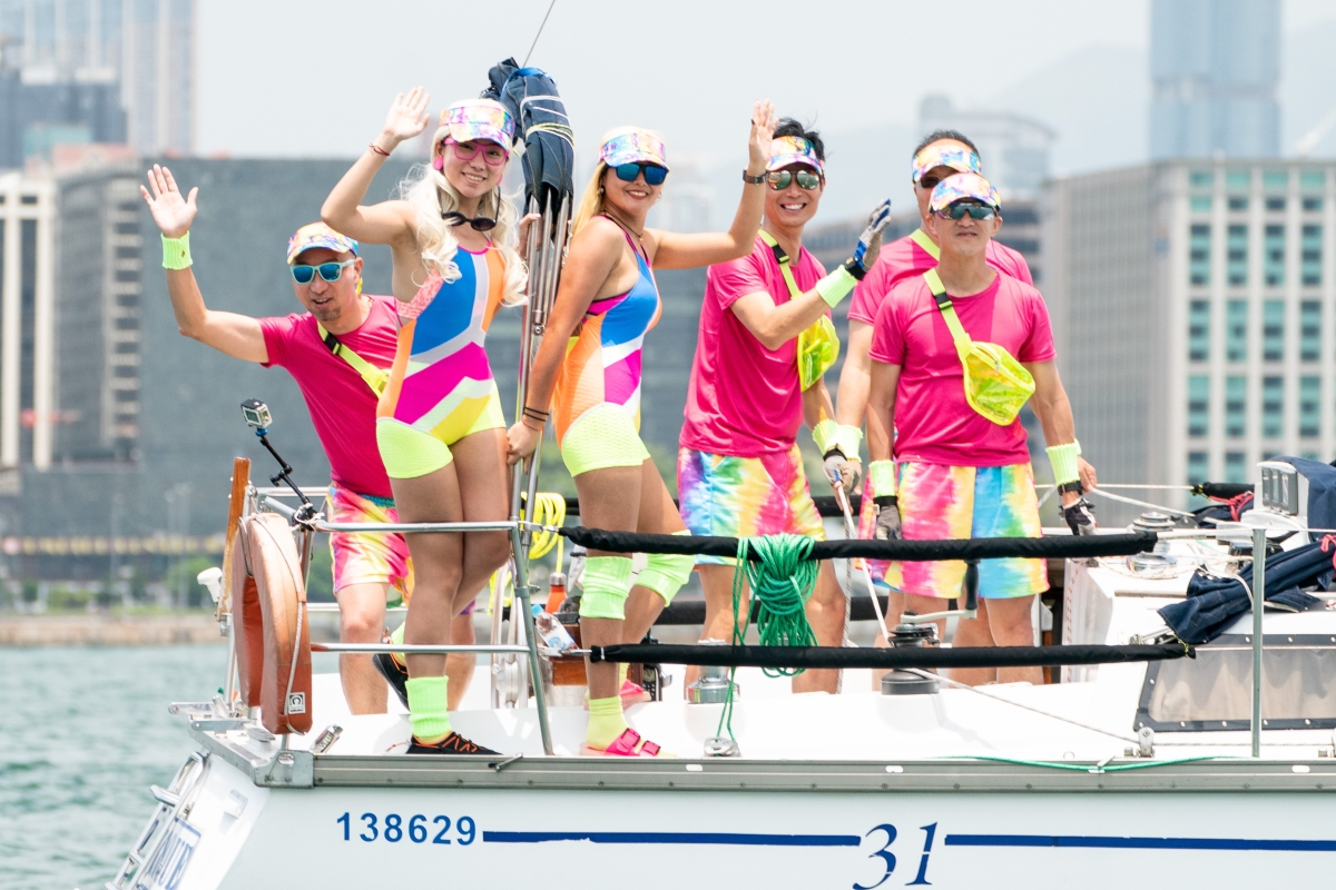 圖片來源:香港遊艇會。 賽事中更見帆船運動員打扮成瘋魔萬千小孩的卡通人物如跳跳虎、迷你兵團、美少女戰士以及芭比娃娃(Barbie) 等。有美國代表隊伍化身成為搖滾樂之王─“貓王”,比利時代表隊打扮成廣受大眾歡迎的“啤酒”。另外,數支中國香港帆船代表隊富特色的打扮分別有漁民以及鄉村姑娘,眾人一同在維港作賽。(完) 【編輯:崔靜雯】
