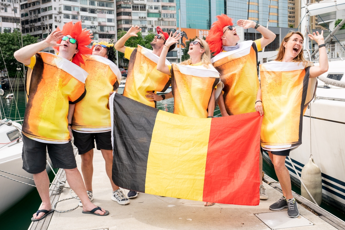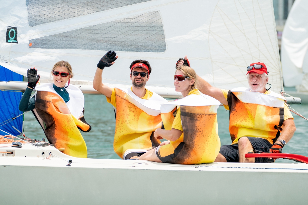 圖片來源:香港遊艇會。Pandora 級別及數位Etchells級別帆船運動員均以本地著名漫畫家王家禧筆下的漫畫角色─老夫子上陣應戰。 香港遊艇會自二零一一年舉辦“民族盃賽”,至今已是第十三屆賽事。一般的帆船賽事,不同國籍的帆船運動員可以組隊比賽,故不時會見到華洋匯聚的船員同賽於維港中;而“民族盃帆船賽”則規定是每隻參戰的帆船上,所有船員的國籍必須與該船所代表的民族及或地區一致。帆船運動員更會卸下隊衣或運動裝,悉心打扮並以出位的造型應戰,為緊張的賽事添上幾分玩味,更被喻為是每年一度的“帆船界香港七人欖球賽”。 在別出心裁的帆船運動員打扮方面,Pandora 級別及數位Etchells級別帆船運動員均以本地著名漫畫家王家禧筆下的漫畫角色─老夫子上陣應戰。一眾帆運動員均指《老夫子》內有不同角色,如老夫子、大蕃薯、秦先生、老趙、陳小姐等。這正好反映出中國香港是一個多元社會,居住在這個城市的人來自五湖四海,大家的生活和而不同,大放異彩。