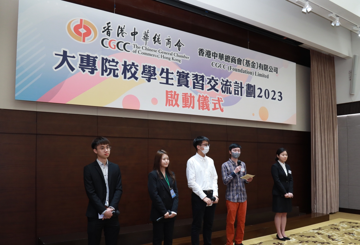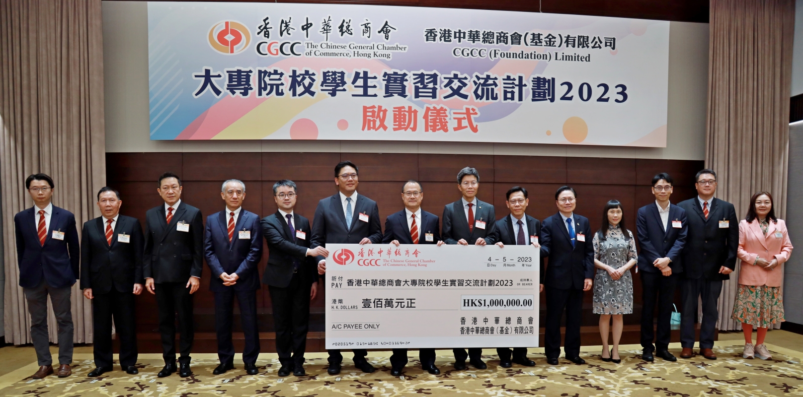 圖片來源:香港中華總商會 中總於4日在舉行“香港中華總商會大專院校學生實習交流計劃2023”啟動儀式。特區政府民政及青年事務局梁宏正副局長、教育局施俊輝副局長應邀出席,聯同中總蔡冠深會長,楊華勇、張學修、李引泉副會長,教育及培訓委員會王紹基主席,以及香港浸會大學周偉立副校長、職業訓練局唐智強執行幹事、以及各家專上院校代表,中總常董、會董、教育及培訓委員會委員和參與交流的同學等逾100人,共同揭開活動序幕。現場舉行支票頒贈儀式,出席活動的學生代表亦分享對參與實習交流的期望。 蔡冠深會長在活動上講述認識一位香港年青人的勵志故事。這位年青人畢業後剛巧碰上疫情,未能找到所修讀學科的相關工作,但她沒有氣餒,反而勇於嘗試,願意加入其集團在越南、老撾等地區工作,憑著努力,現在已能獨當一面,在當地有很好的發展。蔡會長勉勵同學們要珍惜每一個學習交流機會,更要勇於嘗試,敢闖、敢拼、敢幹,將來一定會成功,為自己、為香港未來作出貢獻。 李引泉副會長指出,國家發展一日千里,機會處處。中總一直積極配合國家推進“一帶一路”和粵港澳大灣區建設發展,包括組織內地和海外訪問考察團,通過商會網絡優勢,為工商各業搭建聯繫交流平台。他鼓勵同學們要抓緊實習交流機會,充分了解內地最新形勢發展,擴闊國際視野、豐富中國經驗,成為全方位人才。 王紹基主席介紹中總在資助教育服務方面的情況。中總於1986年由當任會長霍英東博士牽頭並捐資創辦基金公司,多年來得到該會成員及工商各界共同努力及捐款,得以培育更多人才,在疫情期間仍繼續資助各大專院校的實習交流計劃,至今已撥款逾4200萬元,受惠學生超過6000人。