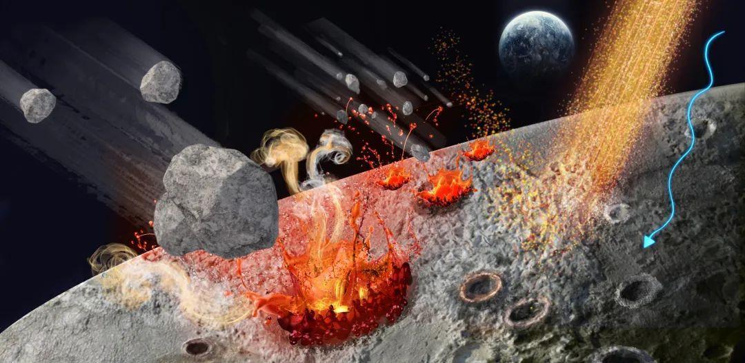 月球表面隕石撞擊、太陽風輻照等空間活動示意圖 此次,研究人員綜合分析了嫦娥五號月壤樣品中玻璃物質的形態、成分、微觀結構和形成機制。他們發現,月球表面存在著固、液、氣多種轉變路徑的玻璃起源。月球表面頻繁遭受的隕石及微隕石撞擊導致的礦物熔化和快速冷卻,產生了各種形態的玻璃物質,包括球狀、橢球狀、啞鈴狀等旋轉形狀的玻璃珠,氣孔構造的膠結質,流體形態的濺射物等。