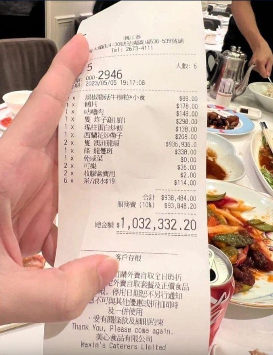 吃兩隻龍蝦結賬竟要103萬?香港酒樓回應了…分享到: