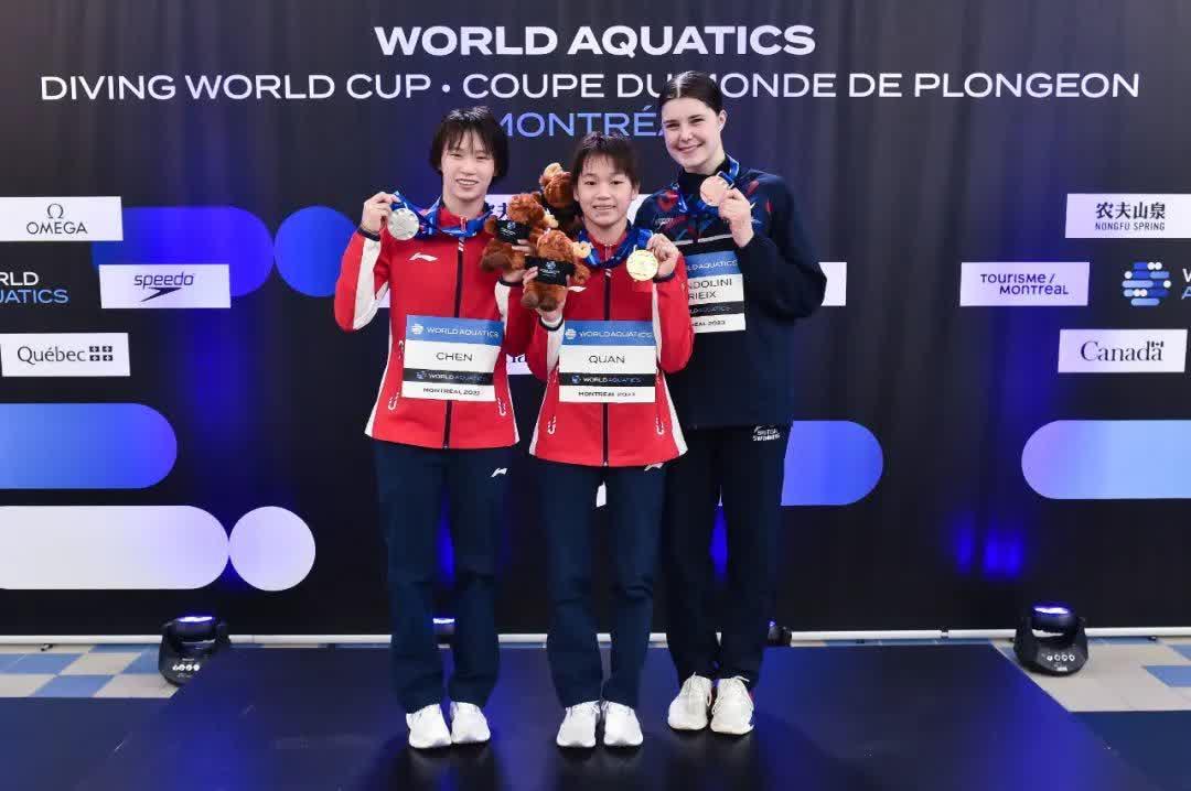 香港新聞網5月8日電 據央視體育報道,北京時間5月8日,跳水世界盃蒙特利爾站結束女子10米台爭奪,中國選手全紅嬋、陳芋汐包攬冠亞軍。