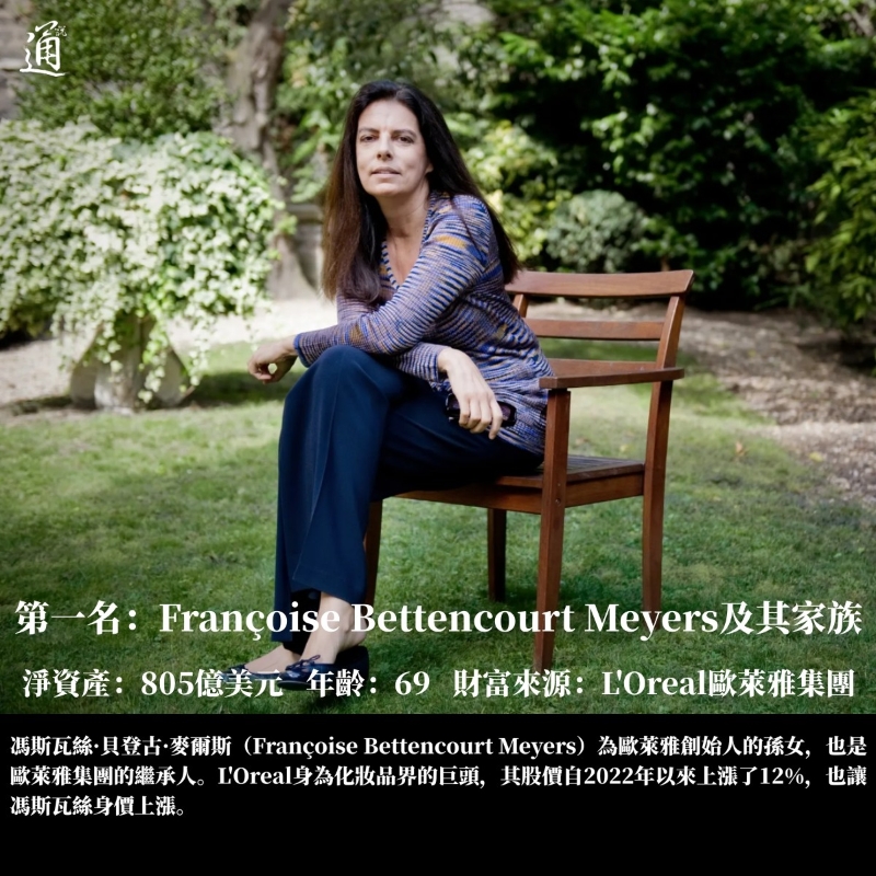 香港新聞網5月8日電 世界上最有錢的女人是誰?根據《福布斯》(Forbes)日前公布2023年度“全球億萬富翁榜”,在2,640人的榜單中,一共有337位女性億萬富翁,女性佔比約為13%,相較前一年的12%略高。 最有錢的女性仍是L'Oreal歐萊雅集團繼承人馮斯瓦絲·貝登古·麥爾斯(Françoise Bettencourt Meyers),她已是連續3年榮登“全球最富有女性”榜首。而歐萊雅不僅是世界上最大的化妝品集團,日前更因收購人氣護膚品牌Aesop而再度登上媒體版面。以下為全球10大女性富豪榜名單: