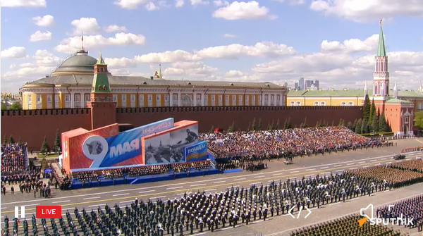 俄羅斯勝利日紅場閱兵。圖源:衛星通訊社直播截圖