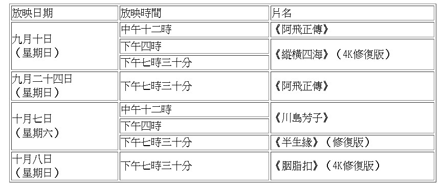 電影資料館“芳華再續”9至10月加場放映分享到: