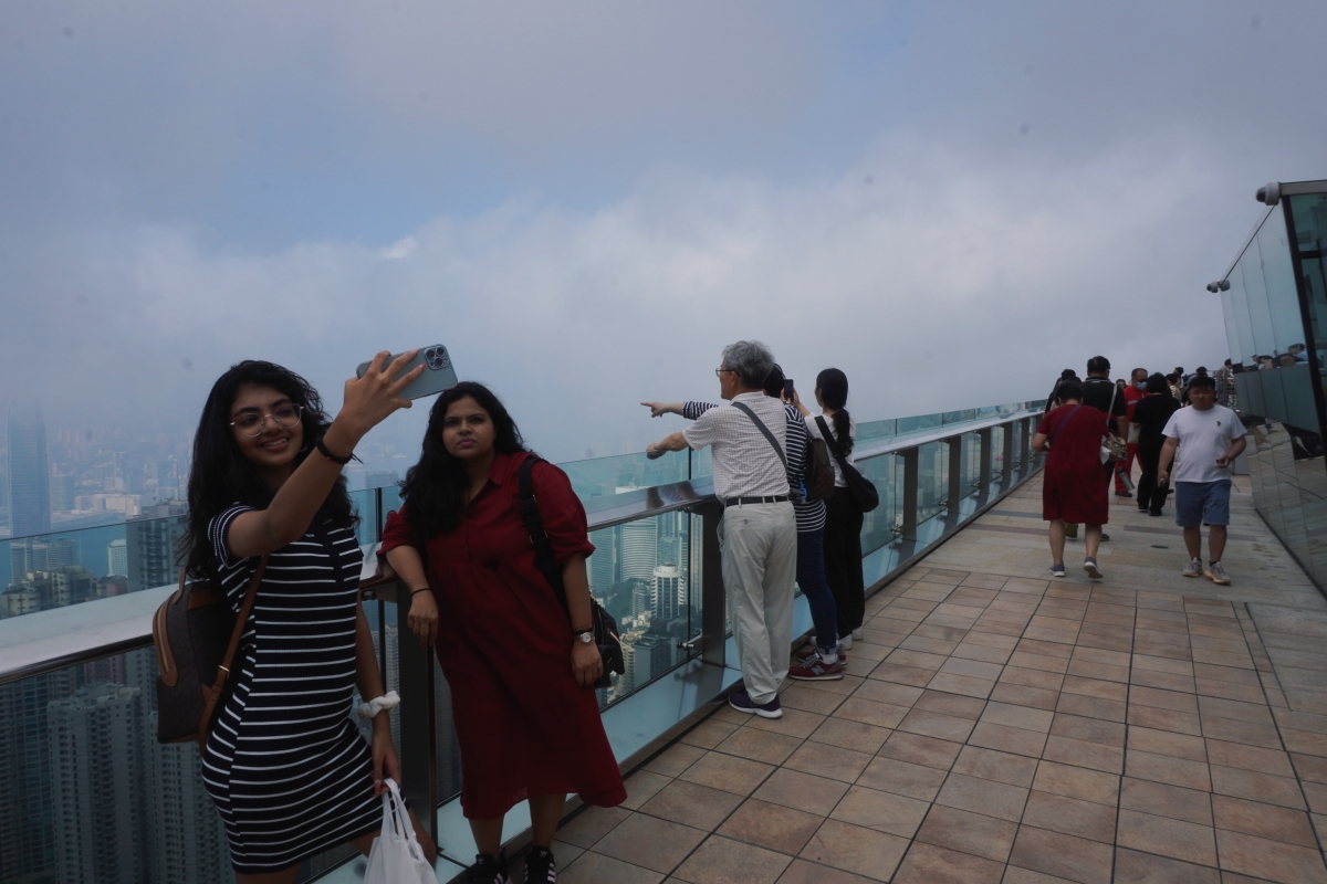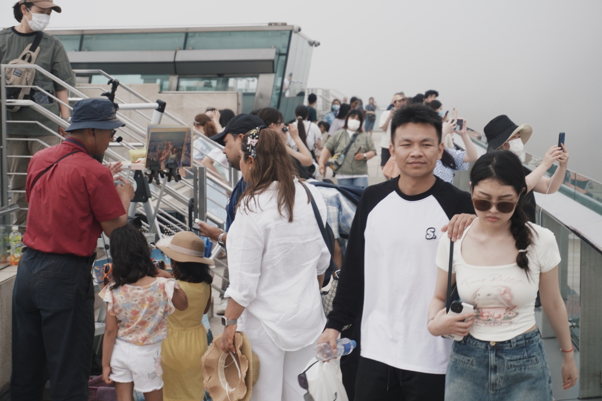 香港新聞網5月20日電(記者  曹文毓攝) 今年通關後,訪港旅客持續增長,4月訪港旅客達289萬人次,按月增加18%。近日,香港最受歡迎的旅遊景點之一,山頂纜車,再現眾多遊客,山頂凌霄閣的遼闊景色吸引多人前往打卡。