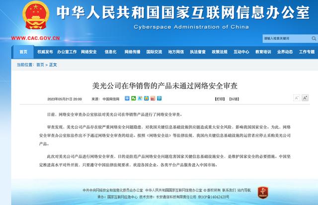 “網信中國”21日發表的聲明顯示,美光公司產品對中國關鍵信息基礎設施供應鏈造成重大安全風險,影響中國國家安全。為此,網絡安全審查辦公室依法作出不予通過網絡安全審查的結論。按照網絡安全法等法律法規,中國國內關鍵信息基礎設施的運營者應停止采購美光公司產品。 聲明稱,此次對美光公司產品進行網絡安全審查,目的是防範產品網絡安全問題危害國家關鍵信息基礎設施安全,是維護國家安全的必要措施。中國堅定推進高水平對外開放,只要遵守中國法律法規要求,歡迎各國企業、各類平台產品服務進入中國市場。 來自港媒的報道,美光公司表示,已接獲網信辦的審查結論通知,現正評估結論內容與後續行動。至於會否提出申訴,美光發言人則表示,期待繼續與中國當局進行討論。 3月,中國網絡安全審查辦公室按照網絡安全審查辦法,對美光公司在華銷售的產品實施網絡安全審查。 美光是美國的存儲芯片行業龍頭,也是全球存儲芯片巨頭之一。路透社21日報道該消息稱,中國將禁止關鍵信息基礎設施運營商從該公司采購產品。報道稱,美光約10%的收入來自中國,目前尚不清楚該消息將給美光帶來哪些影響。報道補充稱,中國於2021年9月實施了旨在保護關鍵信息基礎設施的規則,要求運營商在數據安全等領域遵守更嚴格的要求。 (完) 【編輯:紀東】