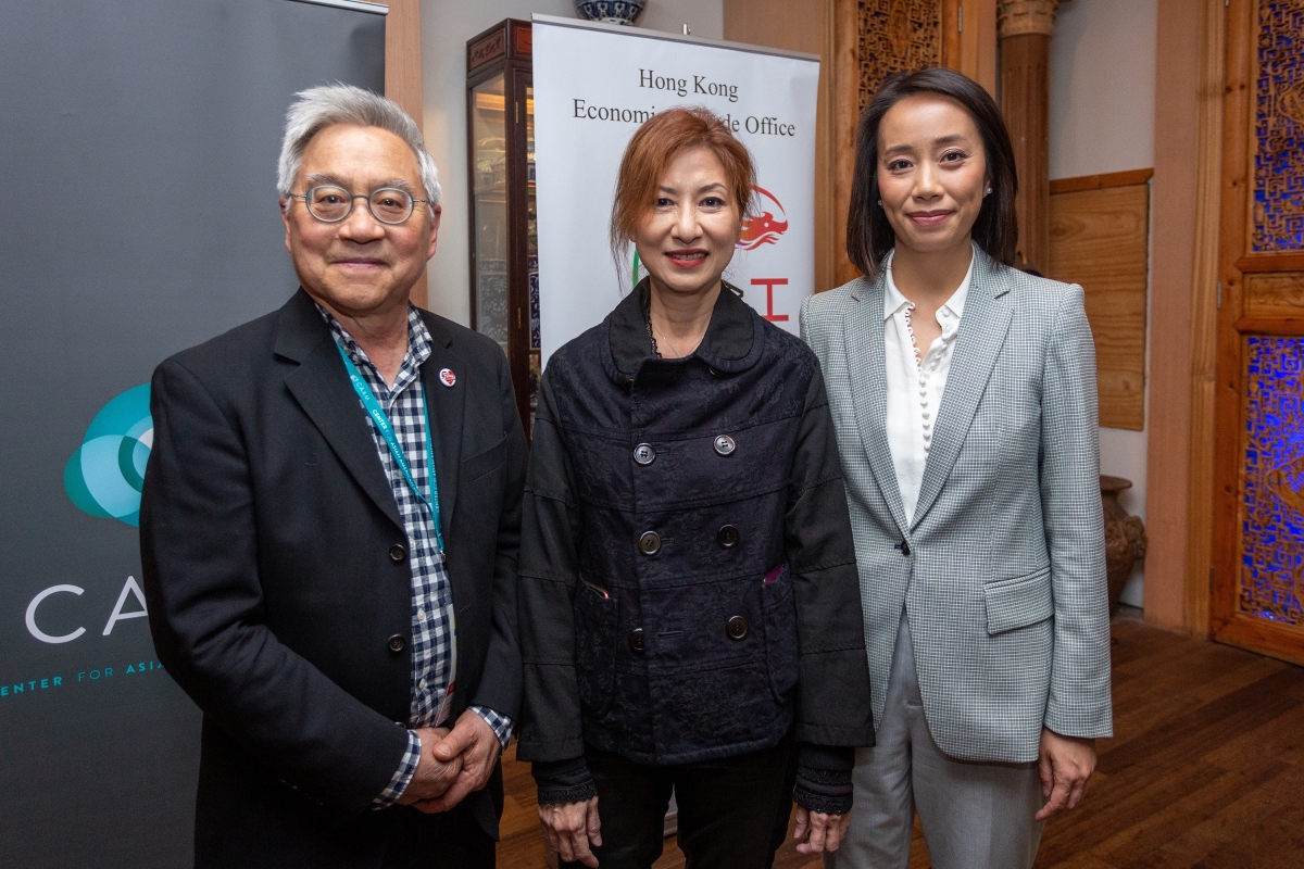 圖片來源:香港政府新聞處。圖示駐三藩市經貿辦處長曾舜雯(右)、《12日》導演林愛華(中)和亞美媒體中心執行總監Stephen Gong(左)在《12日》映前酒會合照。