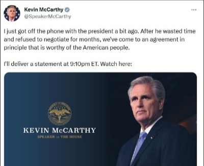 拜登 視頻截圖 當天大約一小時的會談中,拜登強調必須解決“稅收漏洞”,這是拜登與共和黨人的分歧之一。麥卡錫說,他和拜登都認為美國的債務太龐大,雙方都同意需要有所改變。 拜登會後發表聲明說,他和麥卡錫就防止美國債務違約的必要性,進行了“富有成效”的會談。麥卡錫則告訴媒體:“我覺得今天的討論是有成效的。不過我們還沒有達成協議。”據悉,白宮和共和黨人將就此繼續談判。 當天早些時候,麥卡錫告訴媒體,白宮和國會共和黨人必須在本周之內就債務上限達成協議,這樣國會才有時間採取行動,避免債務違約。 美國財長耶倫當天下午致信國會說,在不提高債務上限的情況下,財政部“極可能”6月初就無法履行政府的所有付款義務。這是耶倫三周內第三次致信國會。 美國政府早在今年1月理論上就達到31.4萬億美元的債務上限,但財政部通過挪動資金等“非常措施”短時間內保證政府正常運行。根據最新數據,美財政部目前僅剩下880億美元。(完) 【編輯:林曉惠】