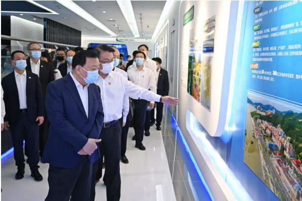 夏寶龍在橫琴粵澳深度合作區展示廳聽取橫琴規劃建設情況介紹。