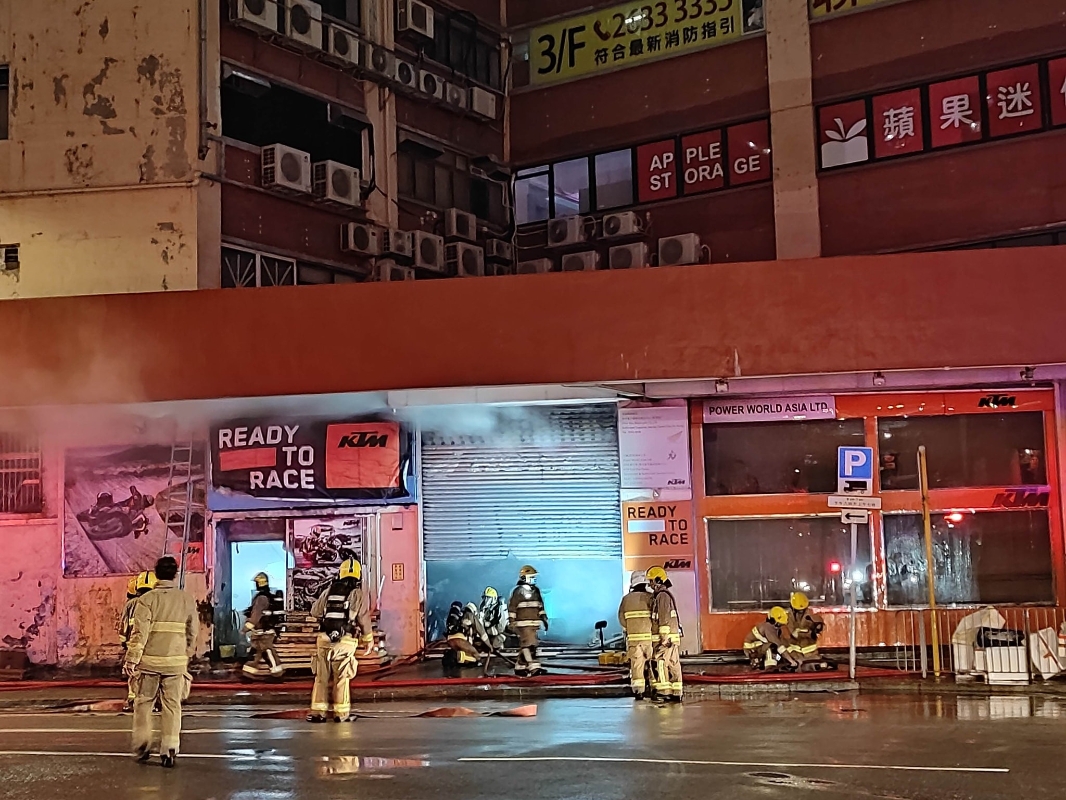 香港突發事故報料區fb圖片。 火勢最終於凌晨2時15分受到包圍,於凌晨2時50分受到控制,並於凌晨3時45分大致被救熄。 消防處消防區長陳國銘於火警後見記者,指消防處共派出195名消防員及救護員、動用2條喉及4隊煙帽隊、38輛消防車及6輛救護車到場營救。火警中共疏散29名人士到安全地方暫避,另外有一名消防員在救火期間不適,須送院治理。 陳國銘指出,火場面積約10米乘10米,擺放了約50輛電單車,加上有大量電單車零件,包括輪呔及塑膠外殼等,令灌救工作難以推進,加大救火難度。暫時未能確定起火原因及起火位置,交由調查隊跟進調查。(完) 【編輯:孟宜君】