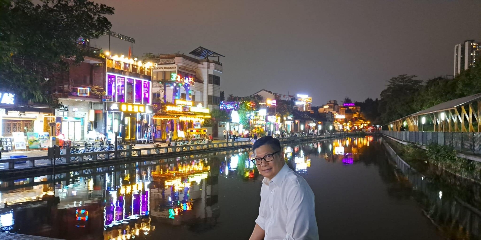 鄧炳強fb圖片。 鄧炳強事後在社交平網站發文,指昨早拜訪過廣州相關部門後,再到一間科企參觀他們最新的通訊科技,令人讚嘆國家嘅科技發展真係一日千里。而下午就抵達家鄉東莞,他不禁慨嘆“好多年沒有回來了,回到家鄉多忙也要走一走”,又指當然也要帶同同事去看看家鄉,並大讚東莞街頭夜景很美。
