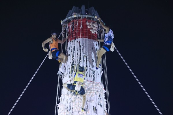 凌晨銅鑼聲一響,一眾選手迅速爬上包山頂。香港中通社圖片 黃嘉欣就大讚所有對手都很強勁,而自己汲取了初賽的經驗,事先特意穿了長褲應戰,並熟習新設計的防墮扣,同時保持輕鬆心情,因此比賽過程順利。 至於爭取十度封王失敗的郭嘉明就表示,自己今日表現理想,惟器材影響了發揮。他指出,自己未能成功在限時內落地是技術問題,安全繩過鬆影響了下降速度,是過往未曾發生過的情況。他坦言,雖然未能奪獎但不感到失望,志在參與及汲收經驗。 接力邀請賽方面,冠軍得主則由港九水上漁民福利促進會(長洲分會)奪得,亞軍是合力體育會,季軍是長洲東堤新村居民聯誼會。另外,代代平安獎得主為黎偉浚,共取得121個包。
