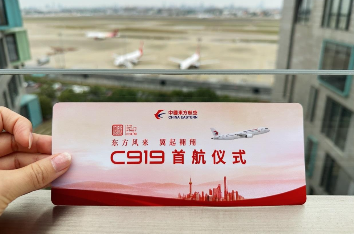 央視截圖 據央視新聞報道,東航為今次飛行,準備了具有紀念意義的特殊登機牌。