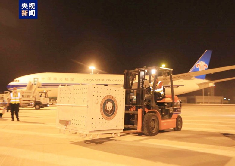 5月28日,大熊貓“丫丫”搭乘專機從上海回京。據直播畫面顯示,丫丫專機已抵達北京大興機場。央視新聞圖