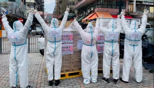 疫情期間劉佩玉無數次派防疫用品(香港中通社圖片)
