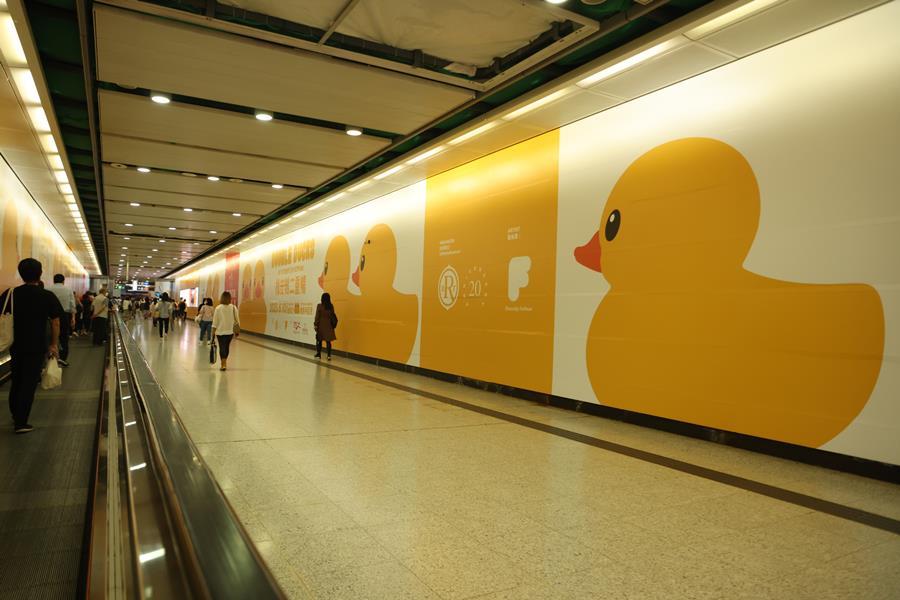香港中通社6月2日電 近日,橡皮鴨的各種形象登陸港鐵,現身金鐘站。今年適逢橡皮鴨訪港十周年,《橡皮鴨二重暢》展覽將於6月10日在維港展出。