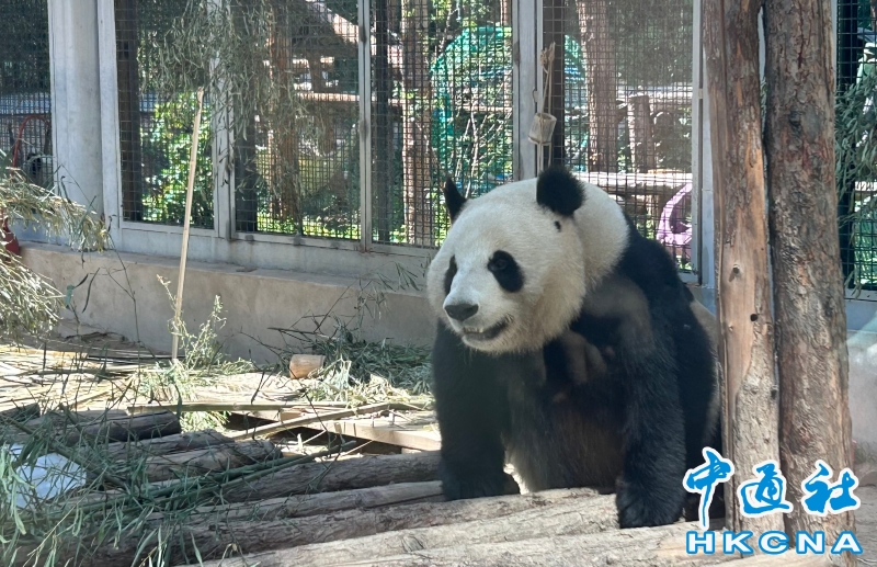 •   6月3日,北京動物園大熊貓館,大熊貓“萌寶”在玩耍。 香港中通社圖片