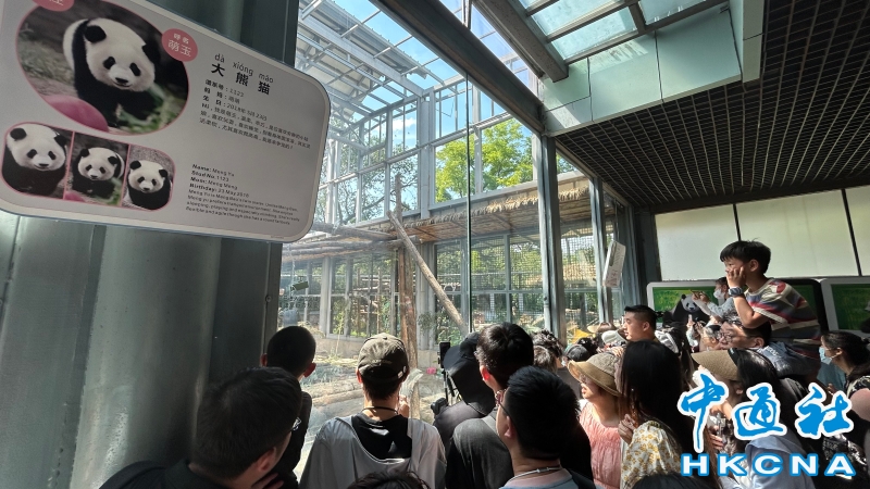 •   6月3日,北京動物園大熊貓館,人們圍觀大熊貓“萌寶”、“萌玉”。 香港中通社圖片