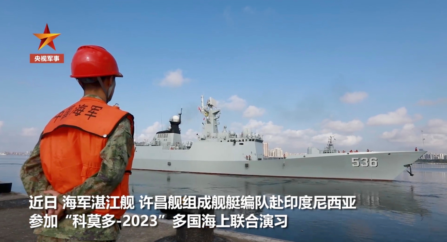 解放軍海軍艦艇編隊抵達印尼,參加“科莫多-2023”多國海上聯合演習。圖源:央視軍事 由驅逐艦湛江艦和護衛艦許昌艦組成的中國艦艇編隊今日(6月5日)進入印尼領海,按海軍禮儀規範,掛上印尼國旗,印尼海軍隨後派出艦艇引領參與國的海軍抵達集結海域。湛江艦是中國自主研製的新型導彈驅逐艦,許昌艦是中國自行研製生產的新型導彈護衛艦。 為期四天的“科莫多-2023”多國海上聯合演習今起展開,參與的國家主要包括東盟十國和合作夥伴國,印尼表示這次演習重點是海上安全演練和人道主義救援等,目的是要增進各國海軍的交流和國家之間的合作。 印尼也邀請了美國、俄羅斯、韓國、朝鮮等47國海軍參與。這將是2014年舉行首屆後的第4次科莫多多國海軍演習。 (完) 【編輯:王軼南】