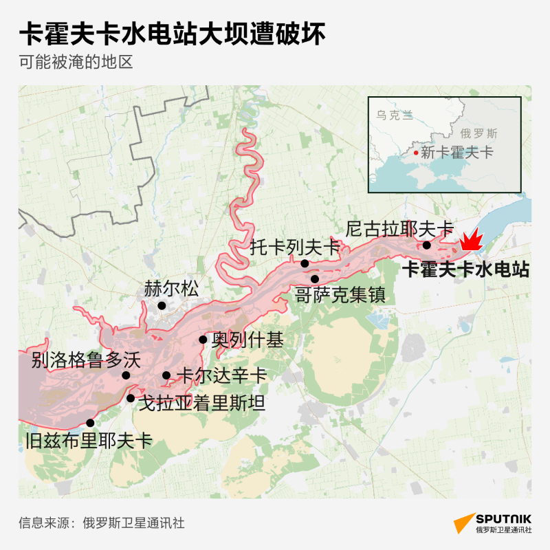 卡霍夫卡水電站可能的淹沒區域。製圖:俄羅斯衛星通訊社 俄羅斯常駐聯合國代表涅邊賈認為,烏克蘭炸毀大壩以創造機會讓烏軍重整部隊,繼續反攻行動。烏克蘭常駐聯合國代表基斯利齊亞就指,無可能從外部以某種方式炸毀大壩,認為是俄軍埋設地雷後引爆。美國駐聯合國副大使伍德在會前表示,未能確定誰應該為事件負責。中國常駐聯合國代表張軍在緊急會議中發言指,大壩被破壞造成的人道經濟及生態影響,令中方深感擔憂,中方呼籲所有衝突當事方遵守國際人道法,全力保護平民及民用設施安全,中方支持聯合國及有關人道組織積極行動,為人員轉移和後續救助,全力提供協助。 卡霍夫卡大壩在俄烏衝突開始時即被俄控制至今,該水庫現在為克里米亞半島供水。該大壩於1956年蘇聯時期在第聶伯河上建造,部分由混凝土製成,部分由土製成。它是烏克蘭最大的同類基礎設施之一。(完) 【編輯:王軼南】