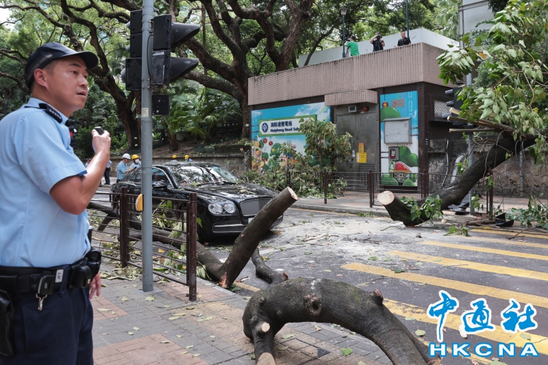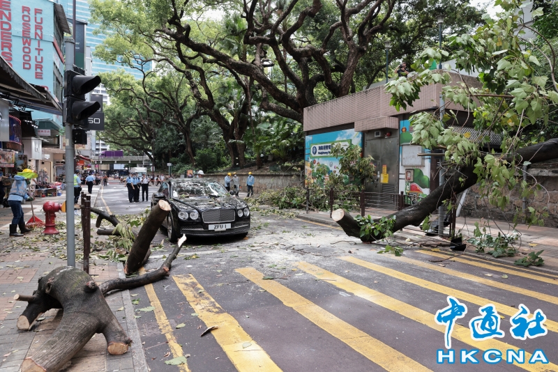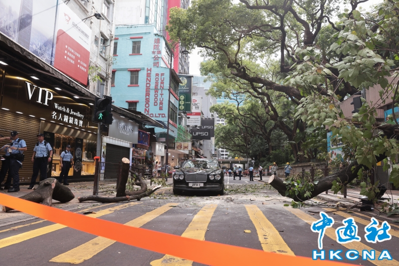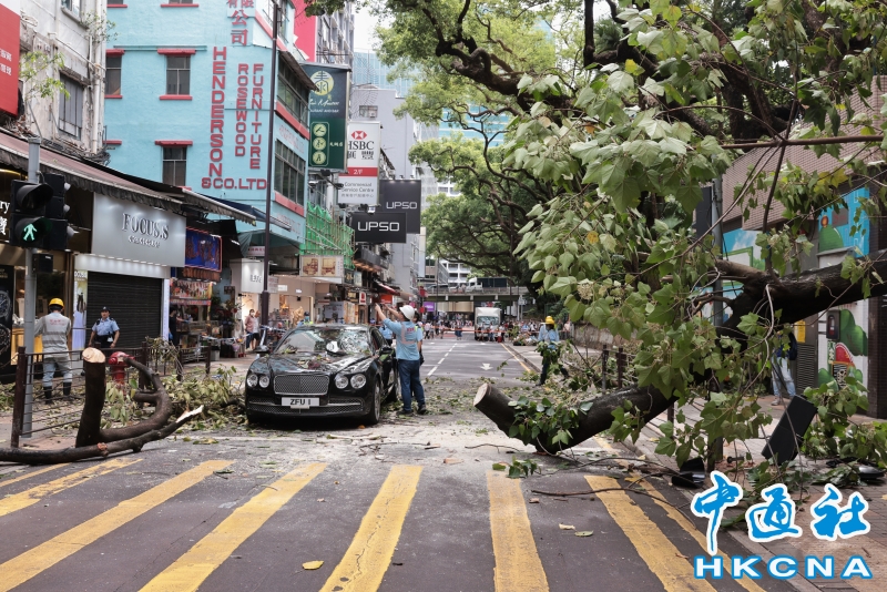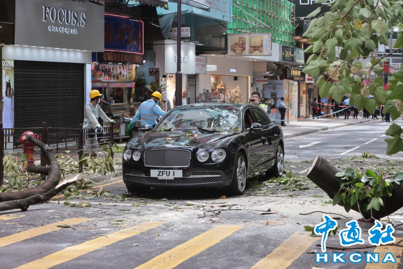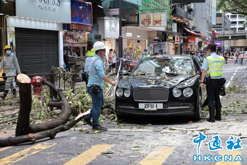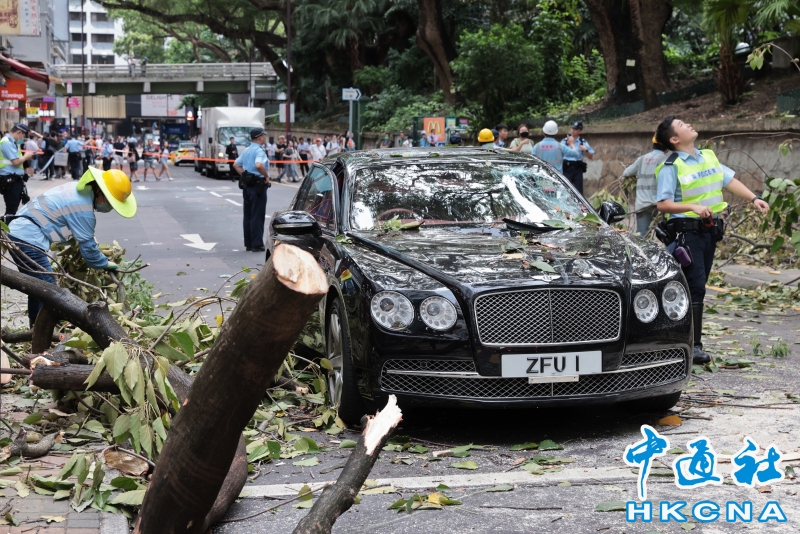 尖沙咀海防道大樹倒塌壓中賓利房車 司機一度被困分享到: