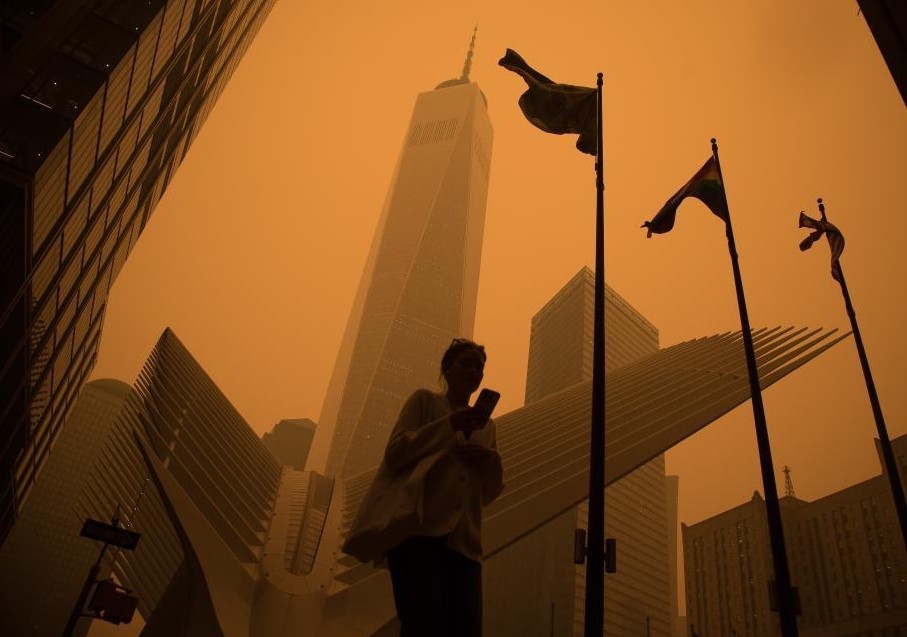 這是近幾十年來,紐約市首次因空氣品質問題建議居民在戶外佩戴口罩。香港中通社 有紐約民眾表示,呼吸都能聞到一股燒焦味。美國紐約市市長亞當斯事後發表聲明,敦促民眾盡可能留在室內,並呼籲老年人和有心髒、呼吸系統性問題的居民外出時應佩戴N95/KN95口罩。 這是近幾十年來,紐約市首次因空氣品質問題建議居民在戶外佩戴口罩。 這種“黃”引起了我們對地球環境和生存空間的焦慮。山火背後,是地球氣候異常,許多地方極度高溫、乾旱。