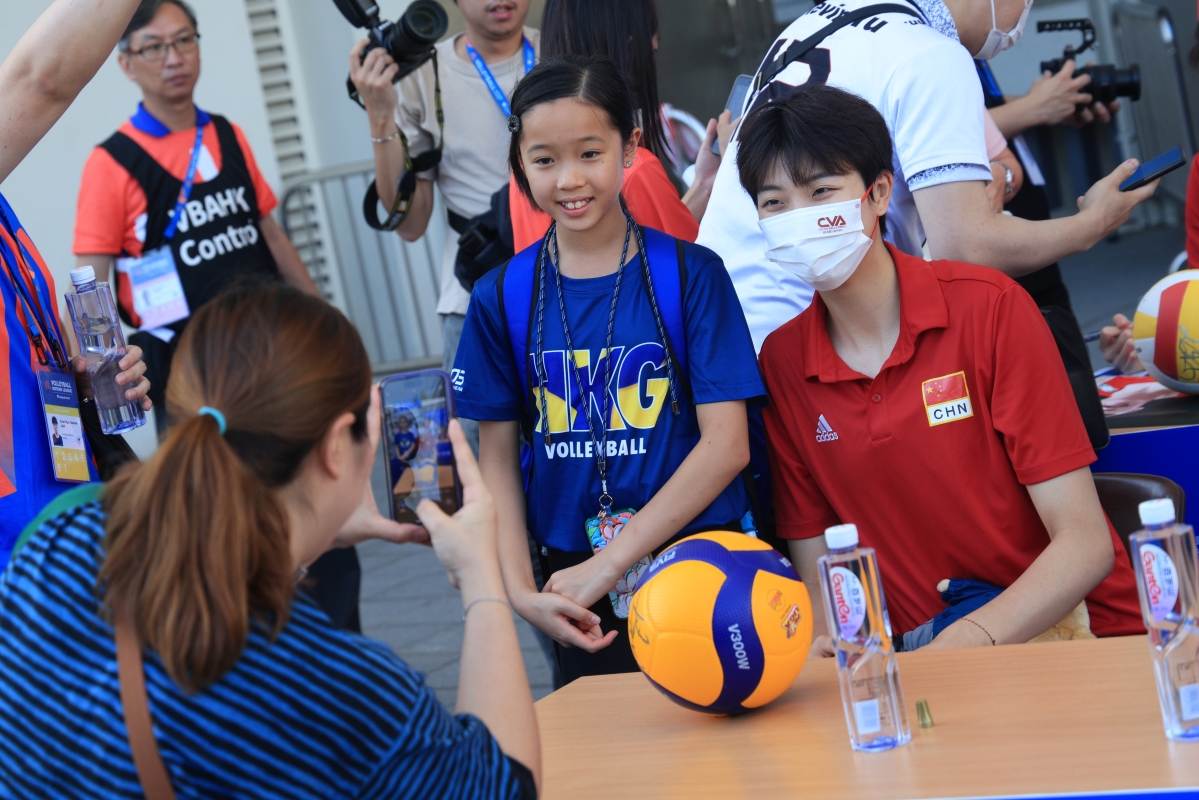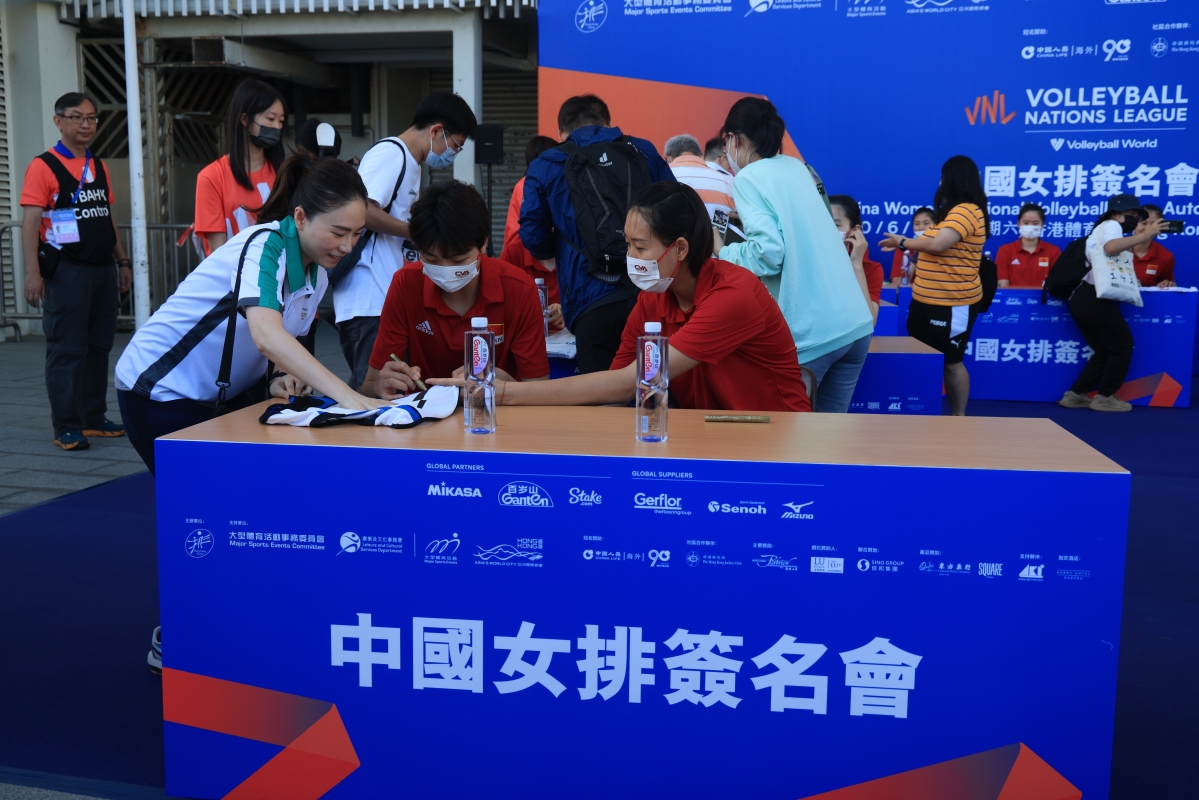中國女排隊員與學生進行技術交流 活動結束後,在香港體育館南門舉行了中國女排簽名會同樣反應熱烈,一眾女排球員亮相,把握練習空擋與球迷見面,讓香港球迷能與偶像近距離接觸,並親自送上打氣話語。