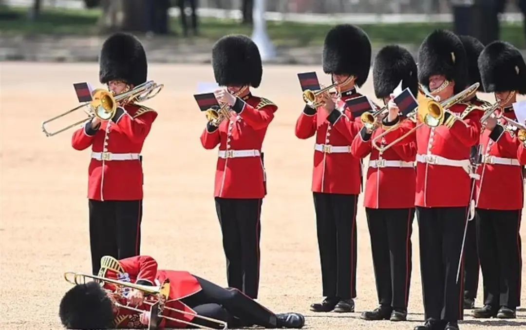 一名手拿長號的演奏衛兵突然暈倒。英媒視頻截圖 據報道,倫敦當天氣溫高達30℃,但參加彩排的衛兵們,卻依然身穿紅色羊毛制服,頭戴高聳的熊皮帽,等待檢閱。 很快,一名手拿長號的演奏衛兵突然暈倒,然後他又重新站了起來,試圖繼續參與彩排,但醫護人員隨後還是護送其離開現場。接著,又過了一會兒,又有兩名衛兵暈倒,隨後被擔架抬走。 曾參與過游行的一位威爾士衛隊士兵表示,參加慶祝游行“就像在蒸桑拿的同時,還用手舉著200公斤的啞鈴”。 據報道,威廉王子當天騎馬完成了對衛兵的檢閱,他在社交媒體上向所有參與彩排的衛兵表示感謝,并表示,“情況很艱難,但你們所有人都做得非常棒”。 據悉,今年紀念英國國王生日的游行將於6月17日舉行,此類紀念活動已經舉行超過260年。(完) 【編輯:許豐悅】
