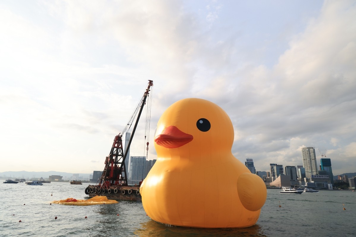 香港新聞網6月12日電 受炎熱天氣影響要放氣避免風險的巨型黃色橡皮鴨一度重新充氣,已經完成檢查。主辦方表示,黃色橡皮鴨將再次在維港海面展出。 主辦方在社交平台表示,橡皮鴨被送到青衣船廠後,工作團隊連夜冒雨檢查,並特別因應近日特殊天氣,為橡皮鴨進行反覆測試,黃色橡皮鴨將再次在維港海面展出。 主辦方指,大型戶外充氣藝術裝置,需要面對不同天氣及突如其來的外在環境挑戰,而作出相應的應變方案。根據天文台預測,未來數日天氣仍不穩定,但強調會盡最大努力守護橡皮鴨,希望社會大眾一起集氣支持,為橡皮鴨及團隊打氣。