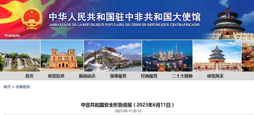 中國駐中非大使館官網截圖 據中國駐中非大使館網頁11日發布通報指,當前,中非共和國安全形勢嚴峻複雜。中非除首都班吉以外其他地區,尤其是中部班巴里地區,安全風險等級均為紅色,即為極高風險,籲中國公民近期暫勿前往相關地區。 中使館又提醒,在中非境內的中國公民和中資機構要密切關注當地安全形勢,加強風險防範意識,以最高標準加大安保投入,統籌好安全保障和生產經營。地處安全形勢明顯惡化區域的中資機構,須切實採取措施,避免非必要外出,壓減非必要人員,並做好突發事態下調整生產經營和人員安排的應急預案。已在中非的中國公民如尚未報備,須在本月內盡快完成個人領事信息報備。 據悉,5月15日,中非國防軍在中非西部博桑戈阿地區巡邏時遭遇武裝團體“愛國革新聯盟”伏擊,造成4人死亡;22日,中非西北部林姆-彭代省一輛汽車在行駛時觸發武裝團體設置的地雷,造成3人死亡;5月20至27日,首都班吉市三區PK5地區發生多起持械搶劫案,造成3人死亡。 6月5日,“愛國革新聯盟”襲擊中非國防軍位於中非西部巴奧羅地區的營地;8日,中非國防軍在中非北部馬昆達礦區附近巡邏時遭遇“愛國革新聯盟”伏擊,雙方激烈交火,造成4名國防軍士兵死亡、8人受傷。(完) 【編輯:凌玉辉】