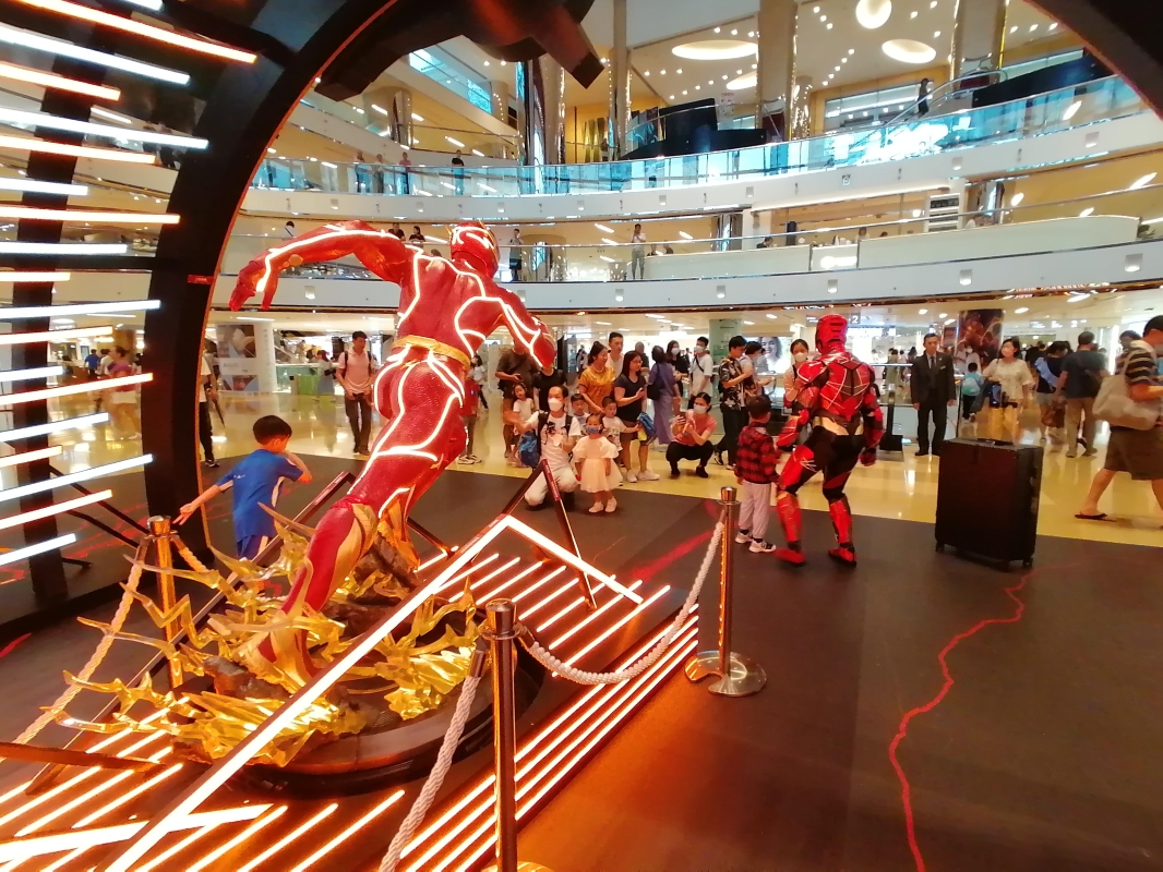 世界頂級珍藏人偶品牌Hot Toys打造的主題展覽“閃電俠.神速閃現”,萬人迷的“閃電俠”穿梭時空快“閃”現身太古城中心,吸引不少粉絲。 “閃電俠”穿梭時空“閃“現太古城中心