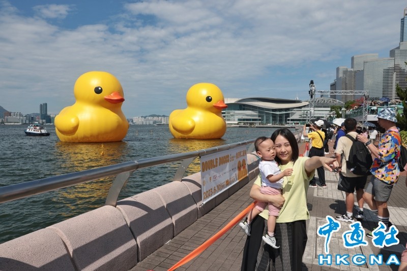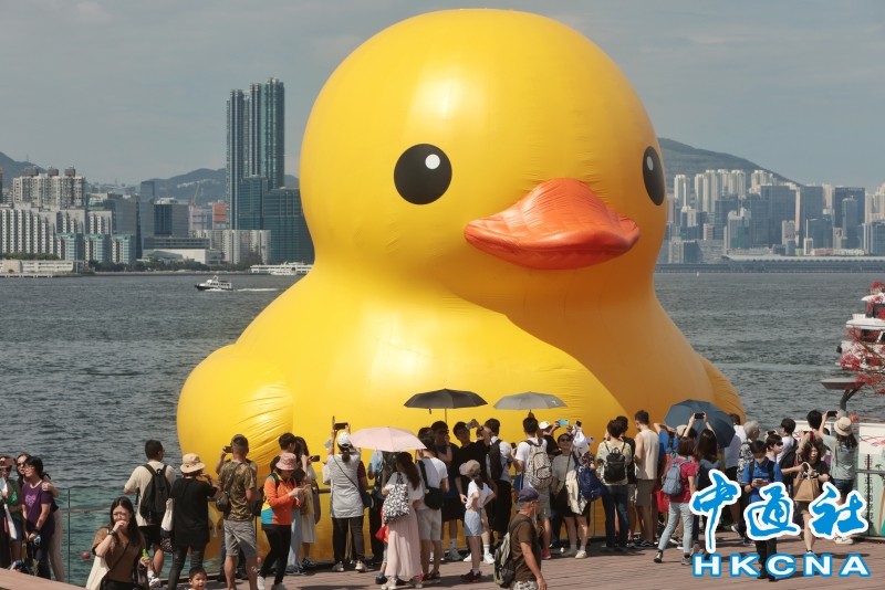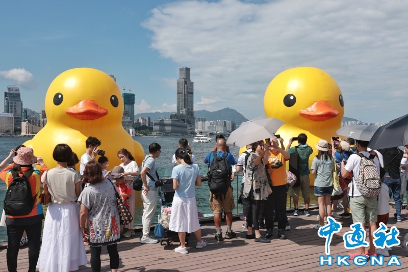 香港新聞網6月18日電 今天是父親節,也是跟巨型橡皮大黃鴨和香港說再見的日子。停駐在中環海濱長廊對面維港海面的兩隻巨型橡皮大黃鴨,提早於今日跟港人講”拜拜“,令一眾本想等稍後人潮減少才去打卡的粉絲措手不及。據悉,今日(18日)下午13時,大黃鴨將在海上出巡,歷時2小時後折返,隨即結束此次訪港之旅。