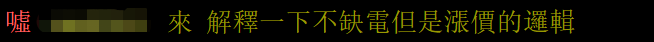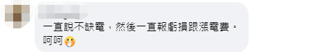 在社交平台臉書上,也有網友留言批評:“一直說不缺電,然後一直報虧損跟漲電費。” ↓