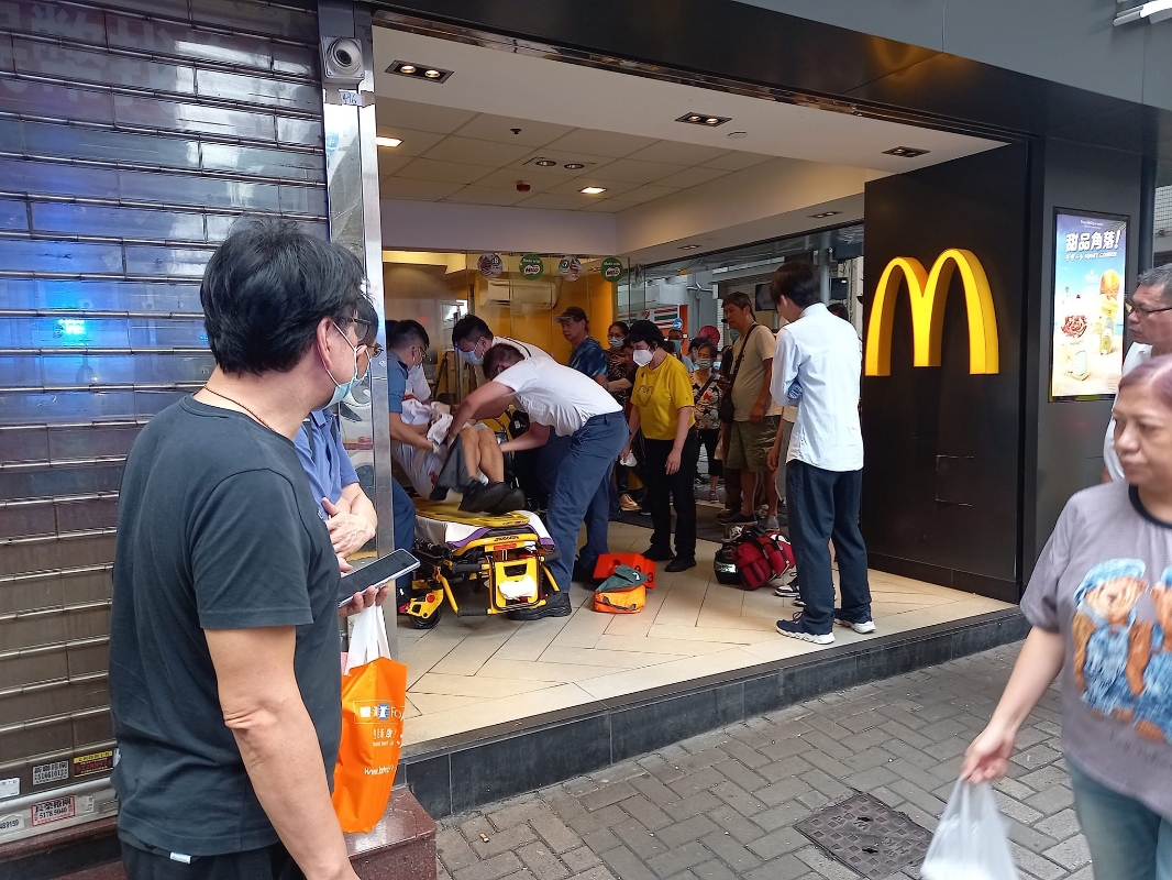 傷者由救護車送院。網圖 事發在18日下午3時25分,警方接獲報案指西環一間麥當勞發生斬人案,38歲餐廳男經理被下屬斬至血流滿面,被送往醫院救治,情況一度危殆,19日中午轉為嚴重。警方事後拘捕29歲男疑犯。警方19日凌晨公佈,疑犯與受害人為下上級關係,案發前兩人曾就疑犯的工作表現發生短暫衝突。衝突過後,疑犯離開快餐店,到附近鮮肉檔拿走兩把刀,折返快餐店襲擊受害人頭部後離開。巡邏人員接獲行兇者衣著等資料後,大約十幾分鐘將行兇者拘捕。至於受害人後腦、後頸分別有8厘米及10厘米刀傷,亦有頭骨骨裂情況。警方表示,暫未有任何證據顯示疑犯患有精神病。 疑犯被控一項有意圖而傷人罪,今早押解至東區裁判法院提堂,被告暫時毋須答辯,案件押後至8月15日再提訊。(完) 【編輯:孟宜君】