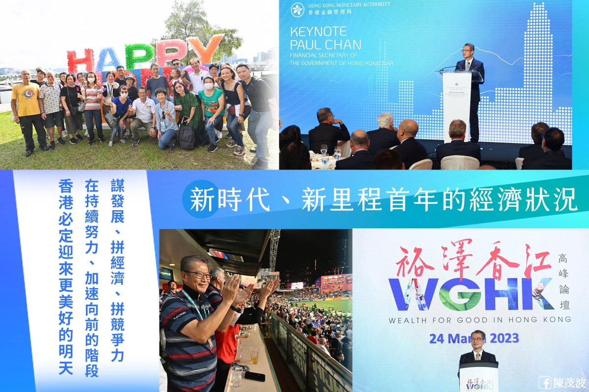 陳茂波網誌圖片。 他說,回望過去的四個季度,受外圍環境惡化和金融狀況收緊所拖累,香港去年第三至第四季整體經濟收縮逾4%,儘管政府的一系列逆周期措施已發揮了穩住經濟的作用。其後在行政長官領導下,精準調節防疫措施有效管控疫情,最終今年2月初迎來全面通關,支持今年首季經濟顯著改善,按年回復增長2.7%。其他一系列措施也有效鞏固了經濟復蘇的勢頭。香港失業率亦由去年第二季的4.7%,回落到目前的3.0%。通脹基本維持溫和。首5個月住宅樓市價量均溫和回升。疫情過去及全面便捷通關,讓各種經濟及商業活動能迅速恢復,不過本港商品出口仍然受壓,今年首四個月的商品出口貨值仍錄按年雙位數跌幅,主要受環球經濟進一步惡化、地緣政治局勢緊張及經濟體間競爭激烈所影響,而這些挑戰料會在今年餘下時間持續。“外圍的情況我們難以管控,但本地的建設則正全力加速推動”。