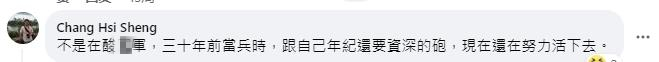“不是在酸台軍,三十年前當兵時,跟自己年紀還要資深的炮,現在還在努力活下去。”