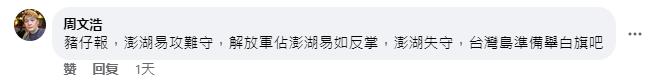 “澎湖易攻難守,解放軍佔澎湖易如反掌,澎湖失守,台灣島準備舉白旗吧!”