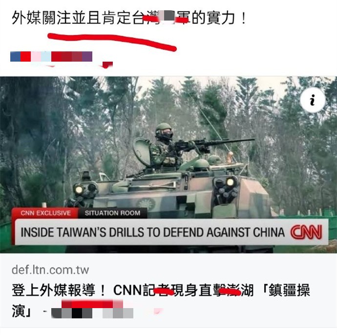 綜合台媒報道,這次實彈射擊主要是為了持續加強台軍在外島的防禦任務,并驗證台軍的實戰化訓練結果究竟如何。 值得一提的是,美國有線電視新聞網(CNN)還特意派記者前往澎湖,現場報道這場台軍所謂的“反空降”演習,并於22日公佈相關畫面,號稱要“讓全世界知道台軍守衛台海第一線的決心。” 該美國記者拱火不嫌事大,極力渲染兩岸軍事對峙的緊張局勢:“台軍假想解放軍傘兵空降佔領馬公機場,台軍如何盡快擊退解放軍的演練,而這種類型的演練,幾乎每天都會在澎湖群島進行,因為澎湖距離大陸的位置不到160公里,所以台軍也把這里當作是抵禦解放軍的最後一道防線。” 最後還不忘吹捧台軍,稱台灣擁有自研自製許多武器裝備的技術,并肯定台灣軍工產業鏈的能量。 台灣綠媒在這次報道中也是格外興奮,紛紛以“登上外媒報導!”為題進行報道。有綠媒還在社交媒體發文稱,“外媒關注并且肯定台軍的實力”!