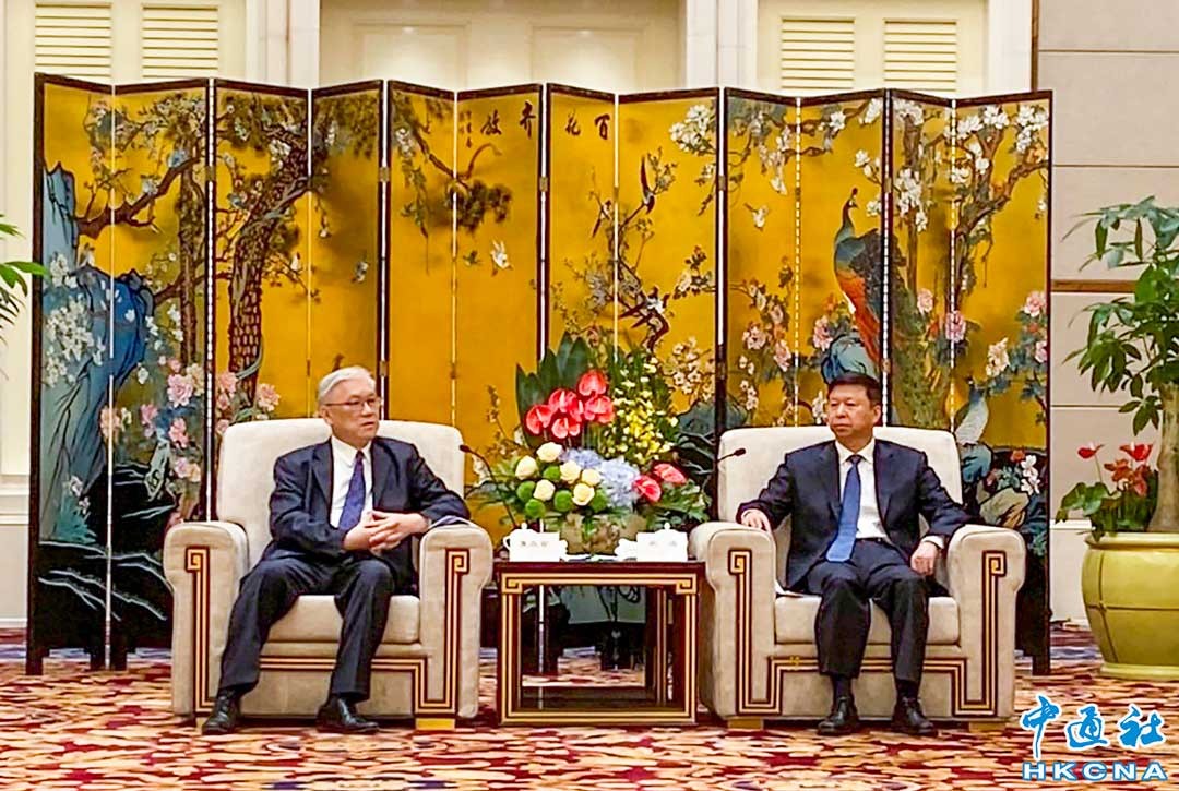 中共中央台辦、國務院台辦主任宋濤(右)18日在廈門會見前來出席第十五屆海峽論壇的中國國民黨副主席夏立言(左)一行。香港中通社圖片